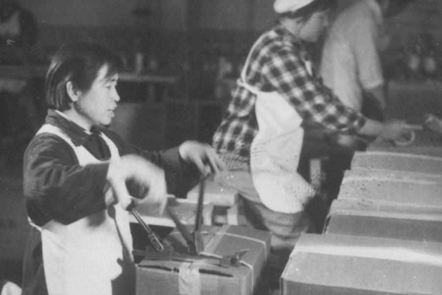 快四点的时候,洗瓶组那四个70厘米宽120厘米长的洗瓶池子里已经接好了水,加热器正加着热,水温不冷也不热。不用问,一定是早到的朱爱梅提前准备好的。从接满四个池子的水,到加好热大约需要30分钟。这时候的朱爱梅,正挑着两个水桶一样的大水壶去水房打水。水房的锅炉正呼呼地冒着热气,她把两个水壶都接满,弯腰挑在肩上,一边走还一边哼着歌回到车间。要知道,这两壶水足足有八十多斤重,但仅仅够车间里67个人喝半个班的时间。工作强度大,工作时间长,人人需要补充水分。工作到一半时间,朱爱梅看见水壶空了,便又会去挑一次水。日复一日,天天如此;年复一年,年年如此。